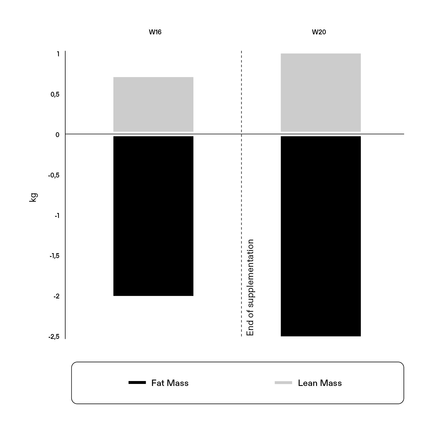 Study results demonstrate that Sinetrol° not only facilitates general weight loss but also targeted fat loss. Moreover, participants in the study were able to concurrently build muscle mass. Even after a 4-week break from usage, Sinetrol" continued to exhibit positive effects,enabling participants to sustain fat loss and muscle growth.